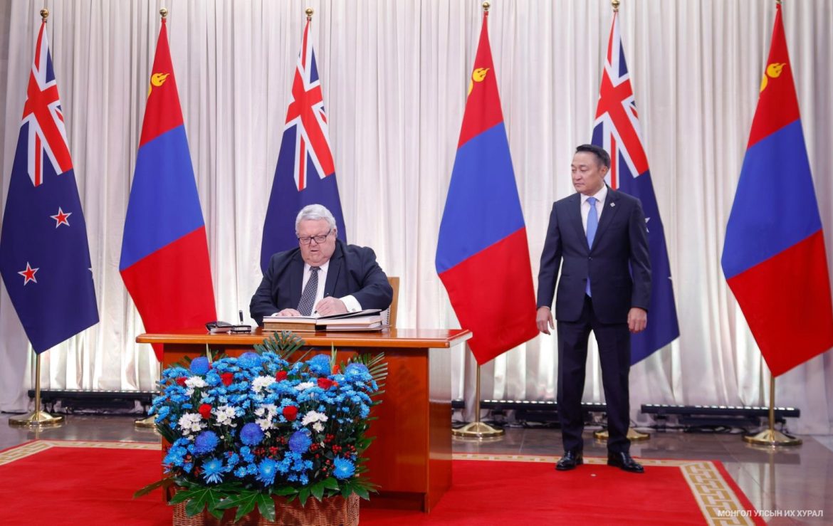 Монгол Улсын Их Хурлын даргын урилгаар манай улсад албан ёсны айлчлал хийж буй Шинэ Зеланд Улсын Парламентын Төлөөлөгчдийн танхимын дарга Жерард Браунли-г УИХ-ын дарга Д.Амарбаясгалан өнөөдөр (2025.09.02) Төрийн ордонд албан ёсоор угтан авч мэндчиллээ.