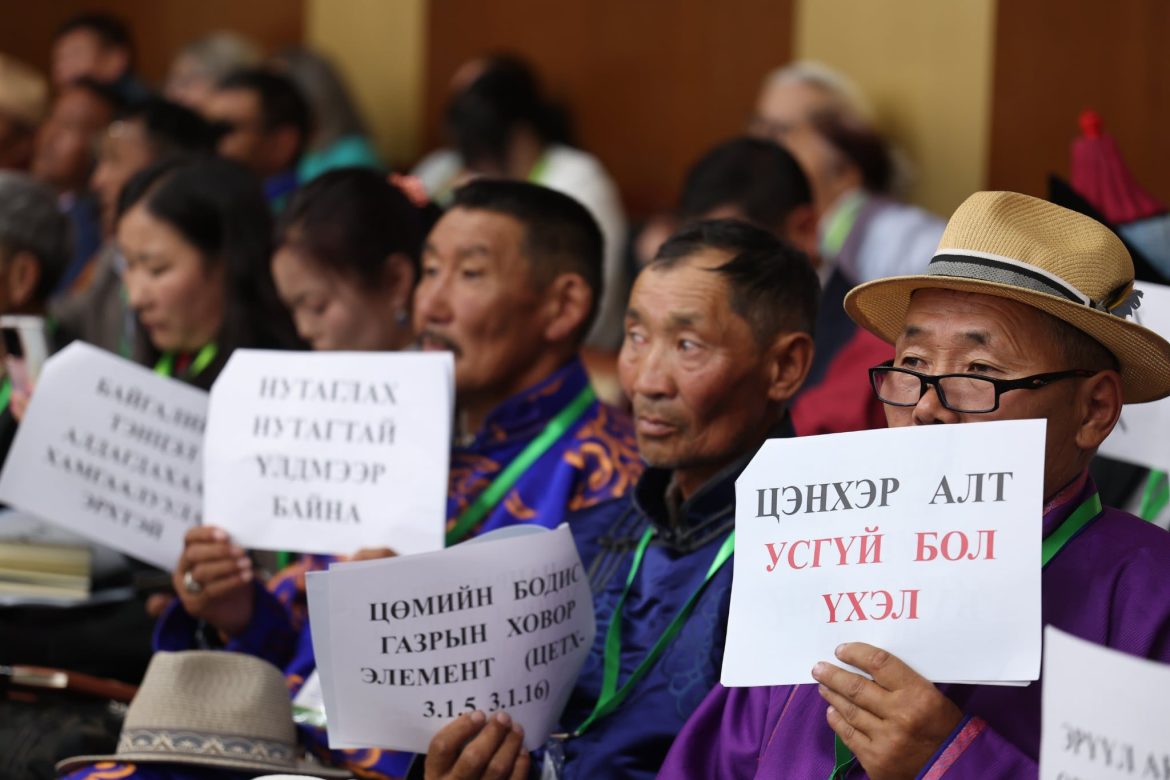 Сонсголд төрийн байгууллага, шинжээчид оролцож, “Халзан бүрэгтэй” орд газрын ашиглалт, байгаль орчин, нийгмийн нөлөөллийн талаар дүгнэлт, илтгэлээ танилцуулсан. Мөн Ховд аймгийн Мянгад сумын иргэд, иргэний нийгмийн байгууллагын төлөөлөл оролцож санал бодлоо илэрхийлэв.