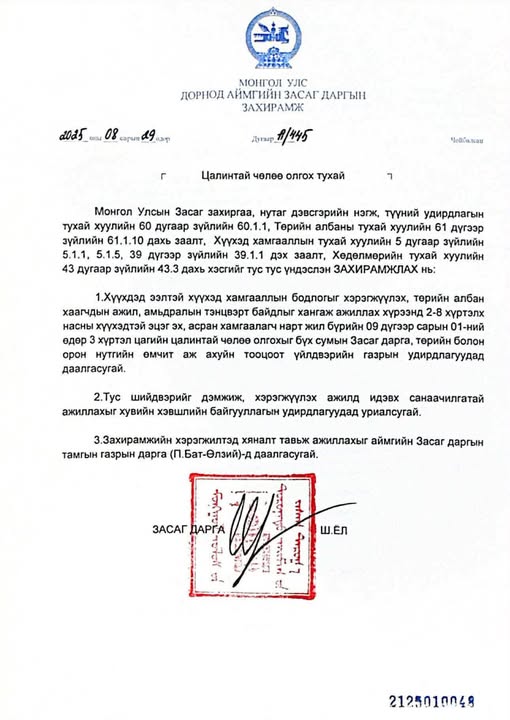 Цаашид уг шийдвэрийг жил бүр уламжлал болгон хэрэгжүүлнэ.