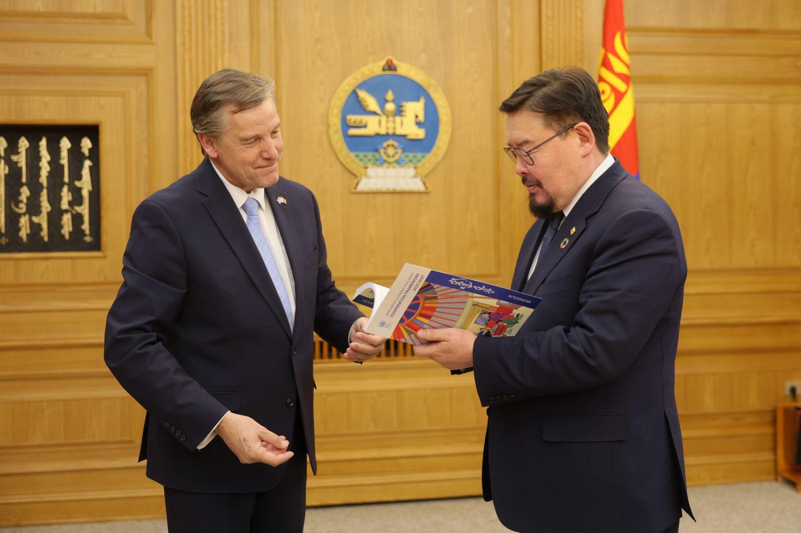 Уулзалтын үеэр талууд Тогтвортой хөгжлийн зорилтуудын хэрэгжилтийг эрчимжүүлэн урагшлуулах, 2026 оны наймдугаар сард Монгол Улсад хүлээн авах Цөлжилттэй тэмцэх тухай НҮБ-ын конвенцын талуудын 17 дугаар бага хурлыг зохион байгуулах бэлтгэл ажлын талаар санал солилцов.