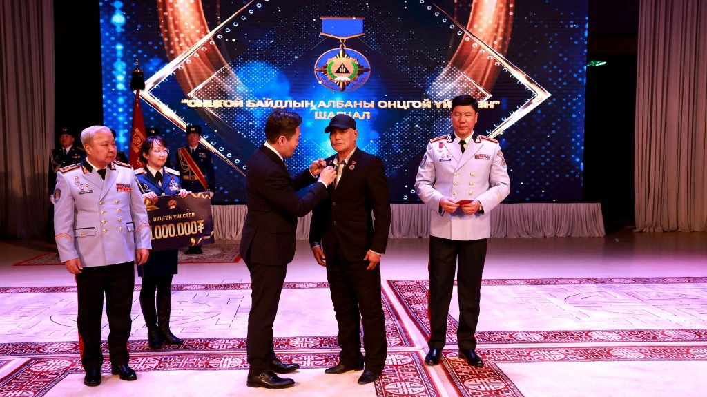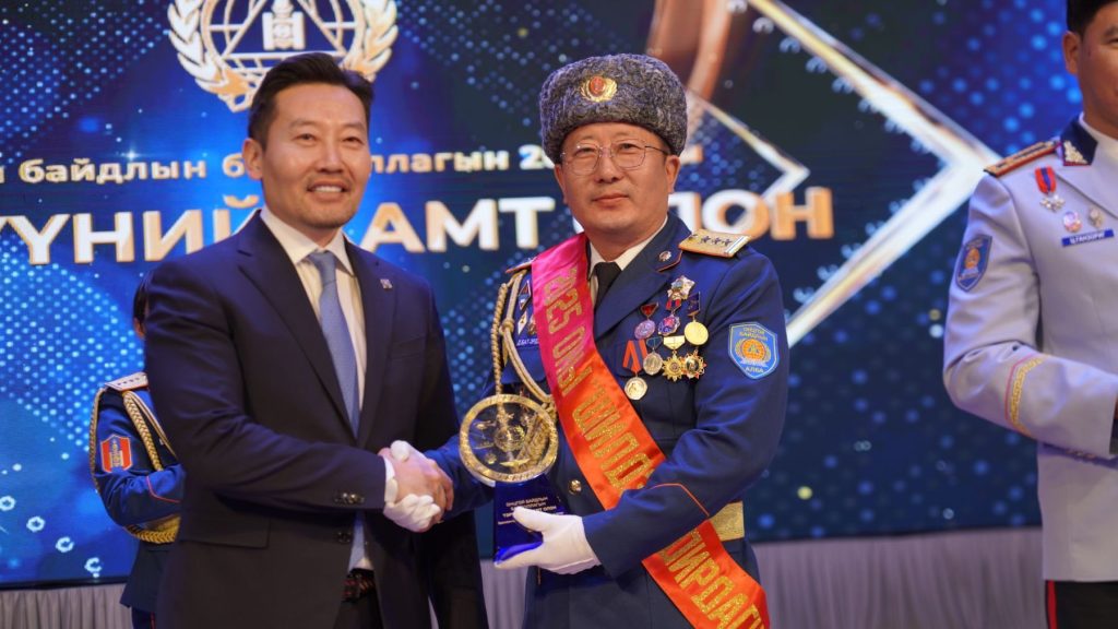 Өнөөдөр Онцгой гавьяа байгуулсан алба хаагчид, 2025 оны шилдэг алба хаагчид, шилдэг анги, салбаруудыг шалгаруулсан бөгөөд галын аюулаас 6 хүний амь аварсан Д.Цогоог “Онцгой үйлстэн” тэмдгээр шагналаа.
